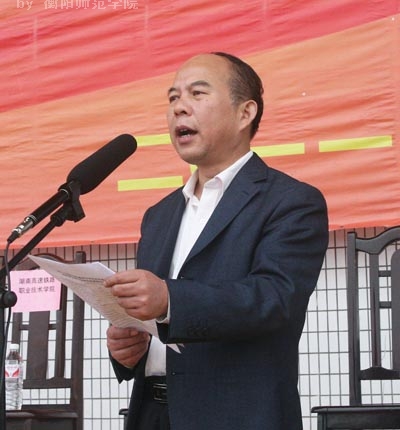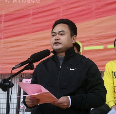 湖南省教育厅体育卫生艺术教育处处长蒋明致大赛开幕词。致词中,他对承办本次比赛的我院的领导和师生员工表示衷心的感谢。他说,提高足球运动水平对全面建设小康社会、满足人民精神文化需要、增强国家软实力具有重要意义。要通过足球比赛这一教育形式,培养学生勇敢拼搏、团结协作的集体主义精神,促进学生全面发展。全体运动员要牢记“团结、奋进、文明、育人”的比赛宗旨,服从赛会安排,遵守比赛纪律;全体裁判员恪尽职守、认真执裁,维护比赛的公平、公正;全体工作人员尽职尽责,热情服务。