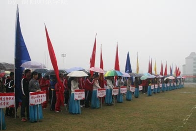 10月27日上午,由省教育厅主办、我院承办的2011年湖南省大学生足球比赛开幕式在我院东校区田径场举行。湖南省教育厅体育卫生艺术教育处处长蒋明、我院副院长皮修平、教务处处长王鹏、体育系系主任饶平、比赛技术监督皮德华以及裁判长谷贻林等出席开幕式。各参赛代表领队在主席台就坐。湖南省学生体育协会副秘书长何伟健主持开幕式。